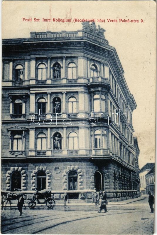 1911 Budapest V. Pesti Szt. Imre Kollégium (Kecskeméti ház). Veres Pál... https://www.darabanth.com/hu/410-Gyorsarveres/410.0/Kepeslapok/Magyarorszag~1500005/1911-Budapest-V-Pesti-Szt-Imre-Kollegium-Kecskemeti-haz-Veres-Palne-utca-9~II2547663