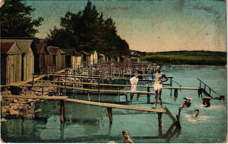 1911 Révfülöp, Sziget fürdő. Csényi István kiadása (EK) https://www.darabanth.com/hu/410-Gyorsarveres/410.0/Kepeslapok/Magyarorszag~1500005/1911-Revfulop-Sziget-furdo-Csenyi-Istvan-kiadasa-EK~II2527899