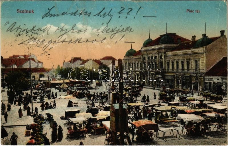 1916 Szolnok, Piac tér, Rosenzveig Ede, Fehér Adolf, Koppán György üzl... https://www.darabanth.com/hu/410-Gyorsarveres/410.0/Kepeslapok/Magyarorszag~1500005/1916-Szolnok-Piac-ter-Rosenzveig-Ede-Feher-Adolf-Koppan-Gyorgy-uzlete-Vasuti-levelezolap~II2527898