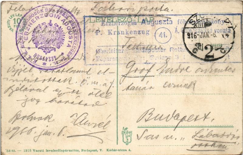 Leírás: 1916 Szolnok, Piac tér, Rosenzveig Ede, Fehér Adolf, Koppán György üzlete. Vasúti levelezőlapárusítás 53-1915. (EK) + "Auguszta főhercegasszony 41. Á. betegszállító vonata"