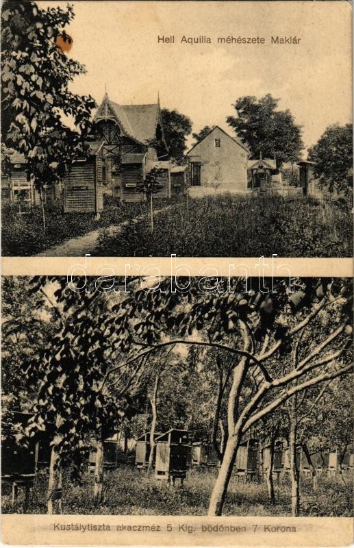 1918 Maklár, Hell Aquilla méhészete, méhkaptárak, kristálytiszta akácm... https://www.darabanth.com/hu/410-Gyorsarveres/410.0/Kepeslapok/Magyarorszag~1500005/1918-Maklar-Hell-Aquilla-meheszete-mehkaptarak-kristalytiszta-akacmez-5-kg-bodonben-7-k~II2549671