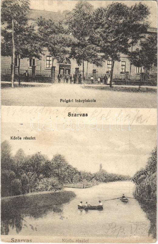 1920 Szarvas, Polgári leányiskola, Körös részlet, evezős csónak. Ifj. ... https://www.darabanth.com/hu/410-Gyorsarveres/410.0/Kepeslapok/Magyarorszag~1500005/1920-Szarvas-Polgari-leanyiskola-Koros-reszlet-evezos-csonak-Ifj-Kovacsik-Karoly-kiadC3~II2095085