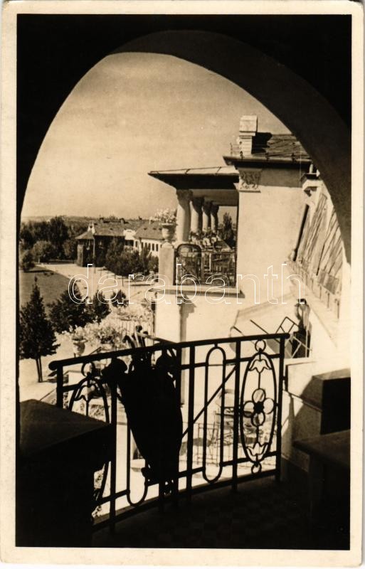 Leírás: 1933 Balatonkenese, Székesfővárosi Alkalmazottak Segítőalapja üdülőtelepe, kilátás a II. szálló erkélyéről + "KESZTHELY-BUDAPEST 48." vasúti mozgóposta