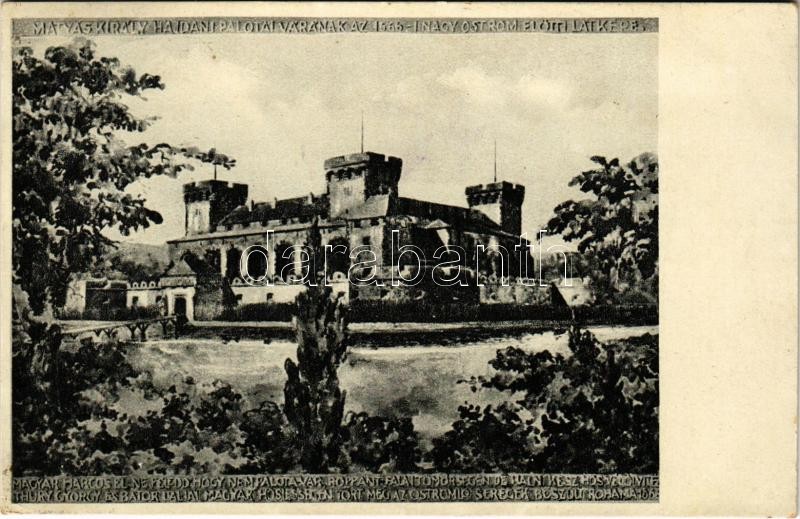 Leírás: 1938 Várpalota, Mátyás király hajdani palotai várának az 1566-os nagy ostrom előtti látképe. Menyhárt János kiadása (EK)