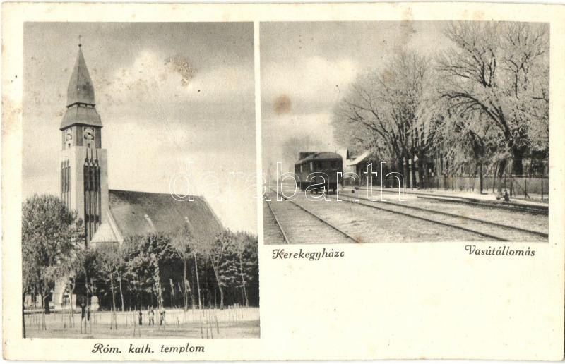 1941 Kerekegyháza, Római katolikus templom, vasútállomás vonattal téle... https://www.darabanth.com/hu/410-Gyorsarveres/410.0/Kepeslapok/Magyarorszag~1500005/1941-Kerekegyhaza-Romai-katolikus-templom-vasutallomas-vonattal-telen-fa~II1811529