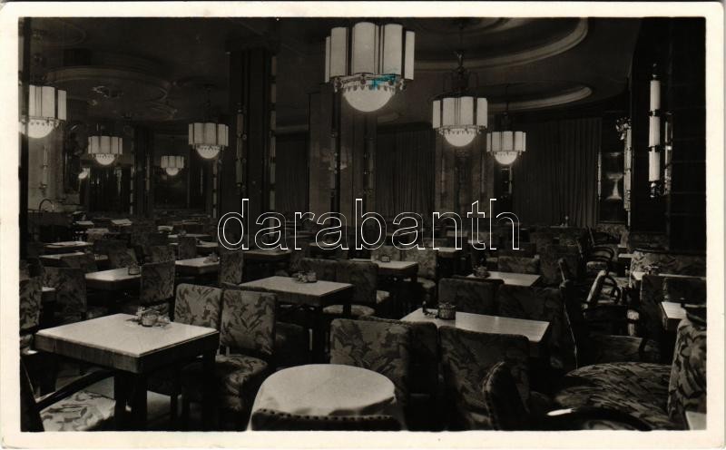 Leírás: 1943 Budapest VII. Emke kávéház és étterem, belső. Erzsébet körút 2.