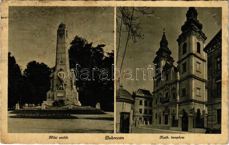 1944 Debrecen, Hősök szobra, emlékmű, Római katolikus templom (EB) https://www.darabanth.com/hu/410-Gyorsarveres/410.0/Kepeslapok/Magyarorszag~1500005/1944-Debrecen-Hosok-szobra-emlekmu-Romai-katolikus-templom-EB~II2547018