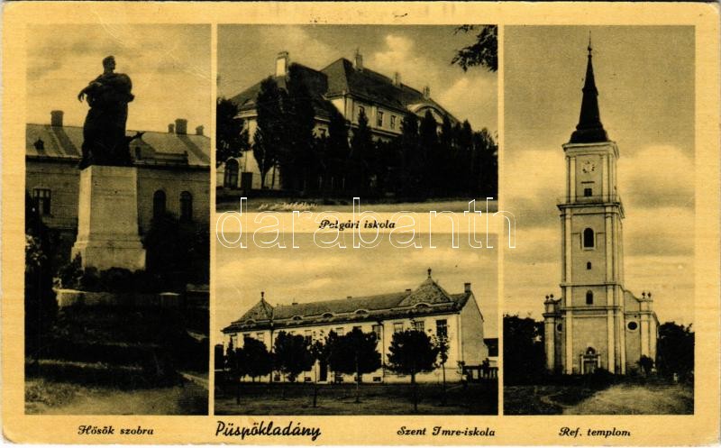 1944 Püspökladány, Református templom, Polgári iskola, Hősök szobra, e... https://www.darabanth.com/hu/410-Gyorsarveres/410.0/Kepeslapok/Magyarorszag~1500005/1944-Puspokladany-Reformatus-templom-Polgari-iskola-Hosok-szobra-emlekmu-Szent-Imre-is~II2543740
