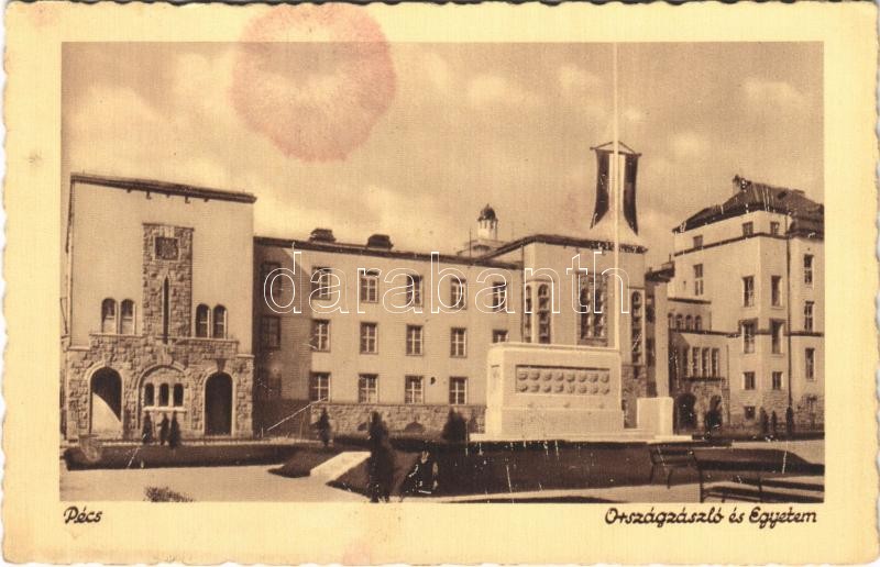 1948 Pécs, Országzászló és Egyetem (fl) https://www.darabanth.com/hu/410-Gyorsarveres/410.0/Kepeslapok/Magyarorszag~1500005/1948-Pecs-Orszagzaszlo-es-Egyetem-fl~II2377461