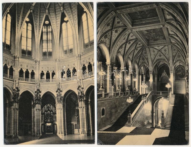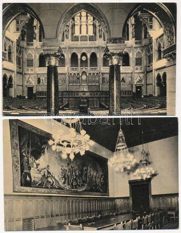 Budapest V. Országház, Parlament; Kupolacsarnok, Kongresszusi ülésterem, Főlépcsőház, Tanácsterem - 4 db MODERN képeslap (Képzőművészeti Alap Kiadóvállalat)