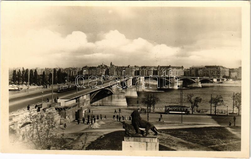 Budapest, az újjáépített Margit híd, villamosok, autóbusz (EK) https://www.darabanth.com/hu/410-Gyorsarveres/410.0/Kepeslapok/Magyarorszag~1500005/Budapest-az-ujjaepitett-Margit-hid-villamosok-autobusz-EK~II2547681