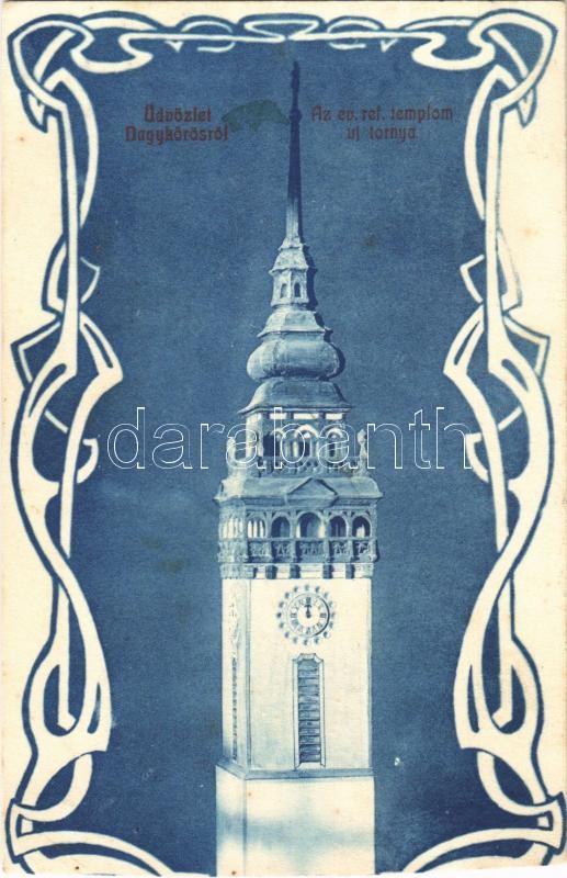 Nagykőrös, Református templom új tornya. Geszner Jenő kiadása. Art Nou... https://www.darabanth.com/hu/410-Gyorsarveres/410.0/Kepeslapok/Magyarorszag~1500005/Nagykoros-Reformatus-templom-uj-tornya-Geszner-Jeno-kiadasa-Art-Nouveau-keret-vagott-cu~II2383046