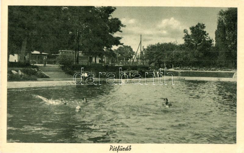Pétfürdő, uszoda, fürdőzők. Kiadja Horváth János