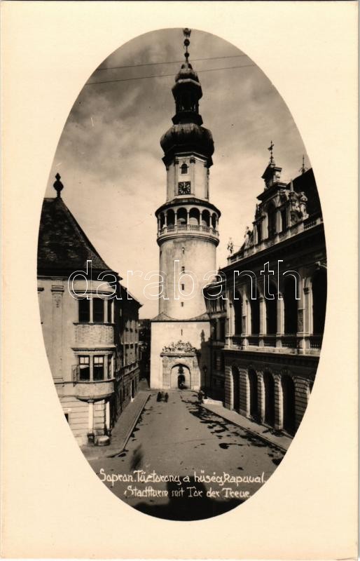 Sopron, Tűztorony a Hűségkapuval. Zsabokorszky mérnök felvétele https://www.darabanth.com/hu/410-Gyorsarveres/410.0/Kepeslapok/Magyarorszag~1500005/Sopron-Tuztorony-a-Husegkapuval-Zsabokorszky-mernok-felvetele~II2543700