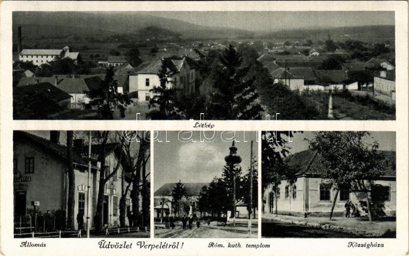 Leírás: Verpelét, látkép, Vasútállomás, Római katolikus templom, Községháza. Kéry György fényképész kiadása