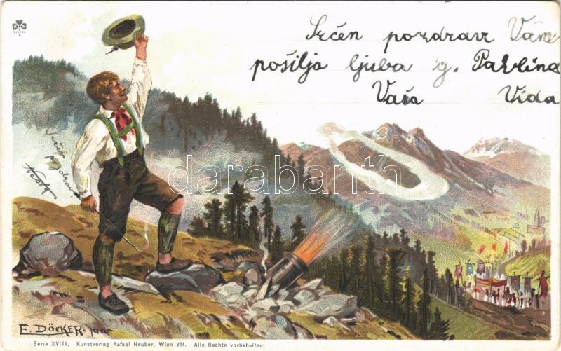 Leírás: 1900 Folklore art postcard. Kunstverlag Rafael Neuber Serie XVIII. litho s: Döcker (EK)