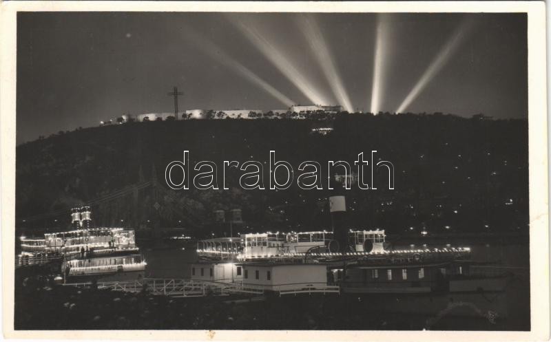 Leírás: 1938 Budapest XXXIV. Nemzetközi Eucharisztikus Kongresszus. Esti hajófelvonulás és tűzijáték / 34th International Eucharistic Congress