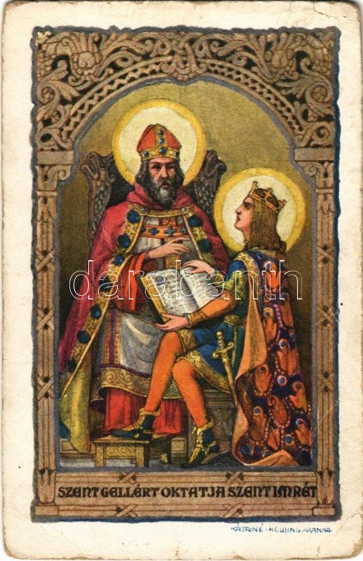 Szent Gellért oktatja Szent Imrét. Rigler József Ede 16/6. / Der Heilige Gerhard lehrt Emerich den Heiligen / Saint Gerard of Csanád instructs Saint Emeric s: Kátainé Helbing Aranka (kopott sarkak / worn corners)