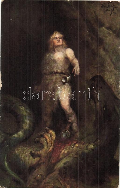 Siegfried. Münchener Künstler Bild 13. s: Ferdinand Leeke https://www.darabanth.com/hu/410-Gyorsarveres/410.0/Kepeslapok/Zene-Zenesz~1500073/Siegfried-Munchener-Kunstler-Bild-13-s-Ferdinand-Leeke~II1877660