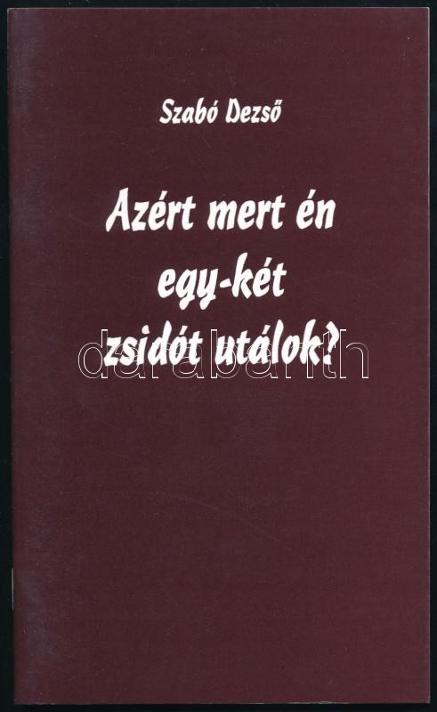 Szabó Dezső: Azért mert én egy-két zsidót utálok? Szerk.: Szőcs Zoltán... https://www.darabanth.com/hu/410-Gyorsarveres/410.0/Konyvek/Konyvek-Egyeb-ritkasagok~1000024/Szabo-Dezso-Azert-mert-en-egy-ket-zsidot-utalok-Szerk-Szocs-Zoltan-Bp-1997-Szabo-D~II2547872
