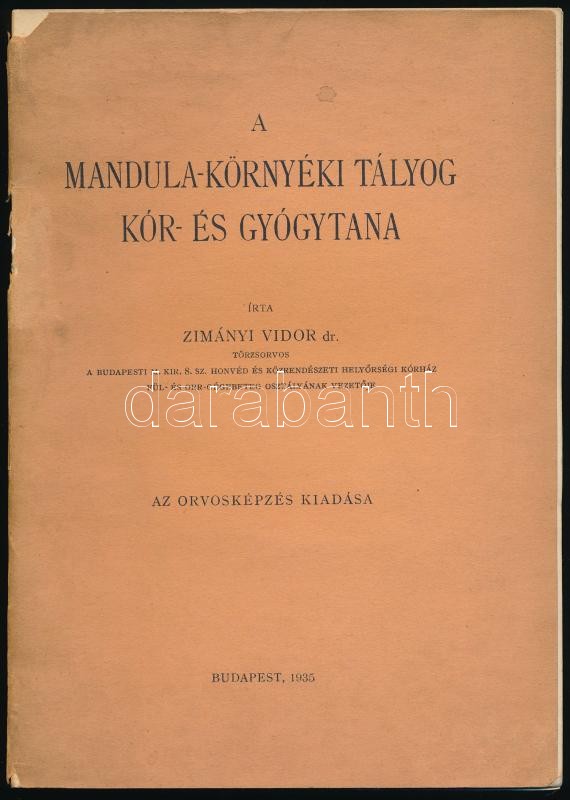 Zimányi Vidor: A mandula-környéki tályog kór- és gyógytana. Bp., 1935., Orvosképzés. Fekete-fehér és színes illusztrációkkal. Kiadói papírkötés, a gerincén sérült, hiányos borítóval.
