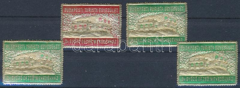 Leírás: 1936. Budapesti Turista Egyesület. Dr. Győző Dezső Menedékház 4 db aranyfóliás dombornyomott levélzáró
