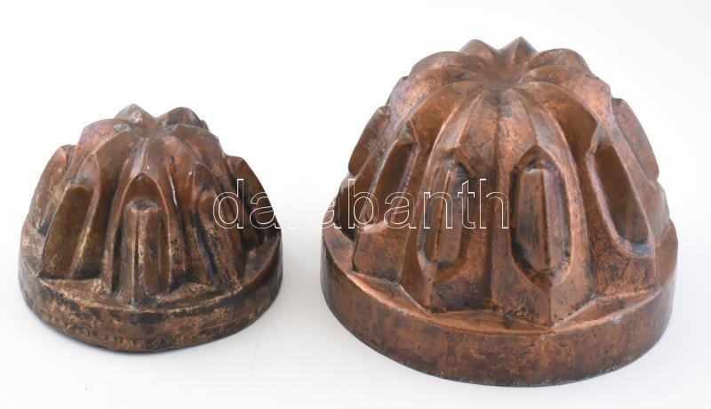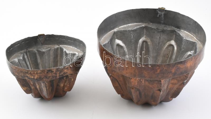 Leírás: 2 db antik ónozott réz kuglófforma, d:17,5és23cm