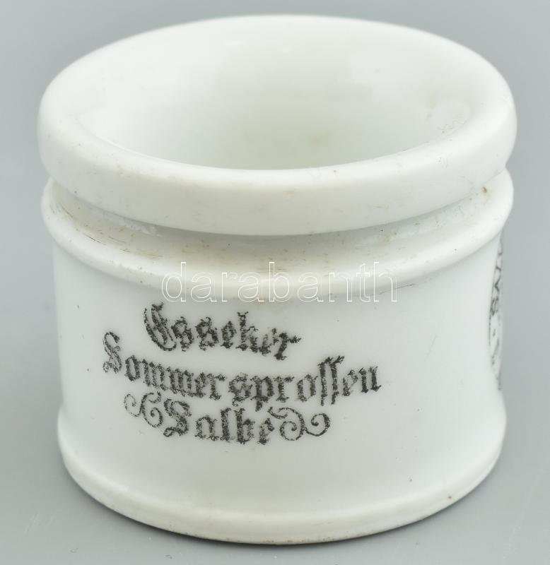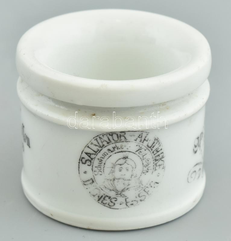 Leírás: Gyógyszeres tégely, porcelán, Salvator, kopott, m:4cm