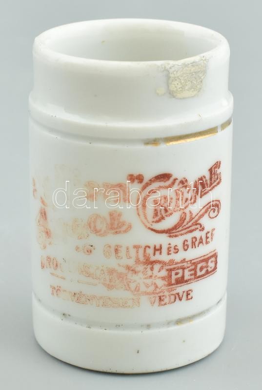 Leírás: Gyógyszeres tégely, porcelán, krém, kopott, m:6cm