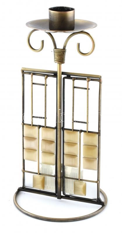 Leírás: Iparművészeti gyertyatartó, fém, üveg, hibátlan m:19cm
