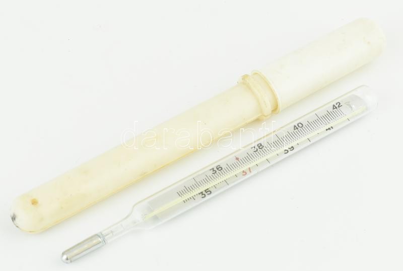 Lázmérő, műanyag tokban.