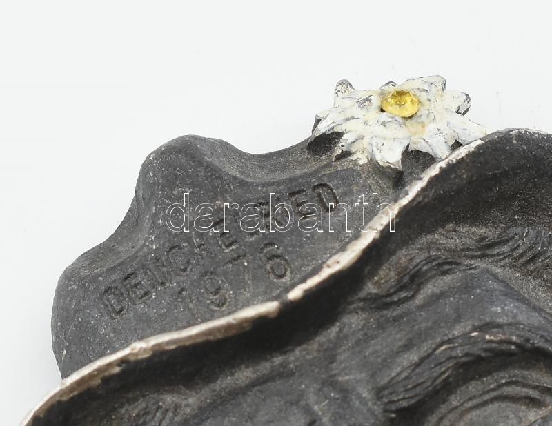 Leírás: Német ólom bross, figurális, Deuchelried 1976 felirattal, kopott. 10x7,5cm