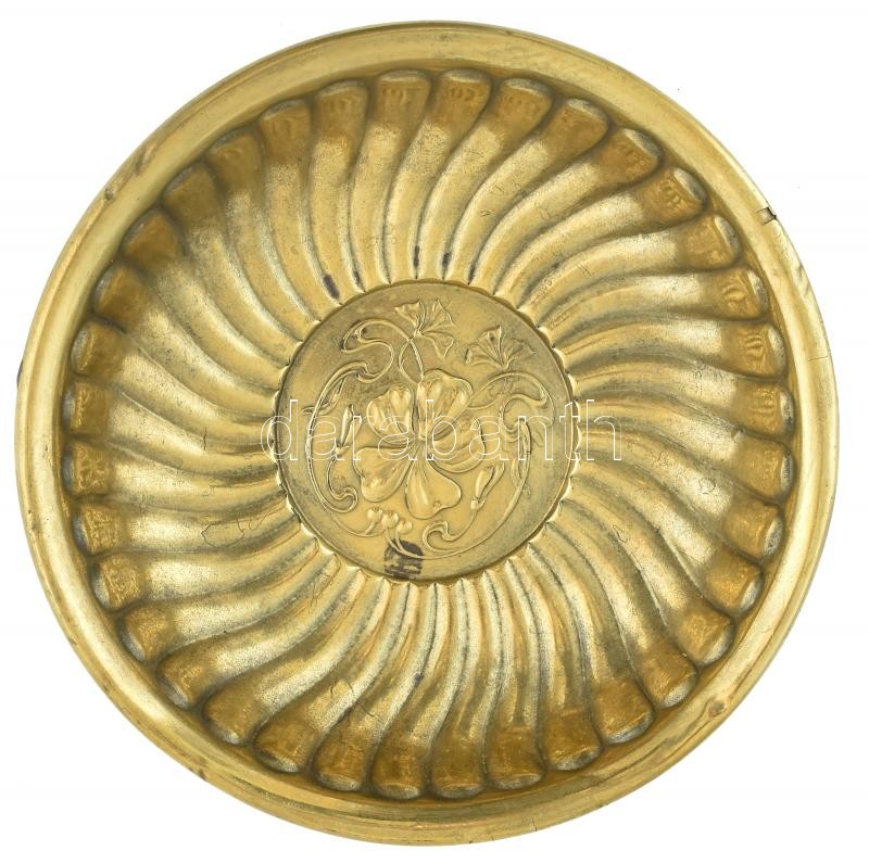 Réz tál, szecessziós díszítéssel d: 23 cm