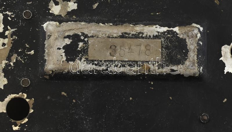 Leírás: Standard Villamossági Rt., régi bakelit tárcsázós telefon, "M. Kir. Posta" fémtáblával, fa testű hallgatóval, kopott, 16x15x14 cm