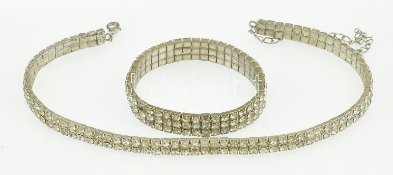 Leírás: Strasszos karkötő és nyaklánc, bizsu.