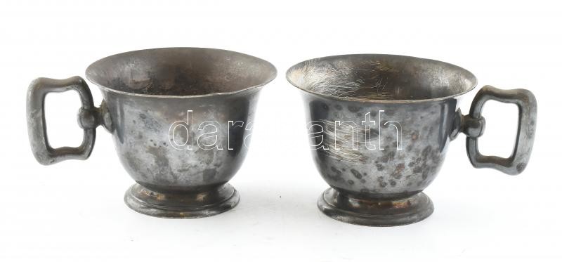 Leírás: Szandrik ezüstözött alpakka csésze 2db, kopott sérült, d: 11cm