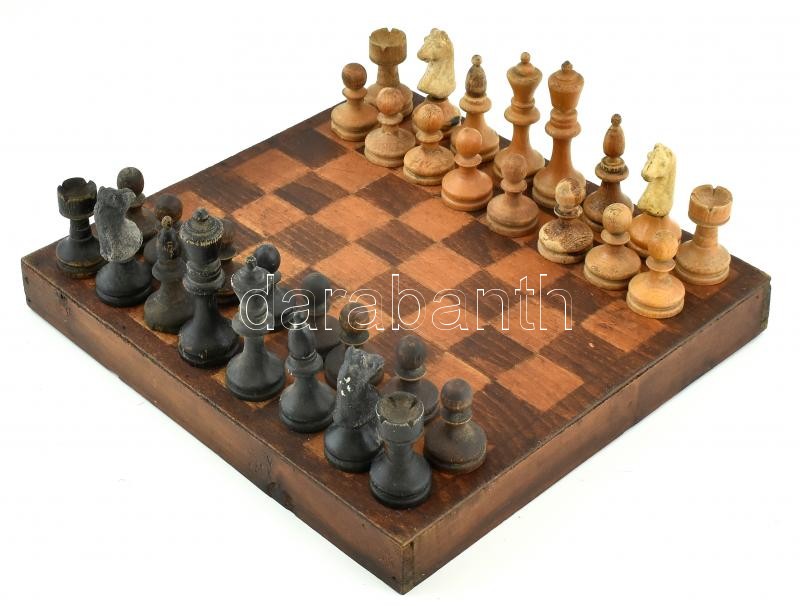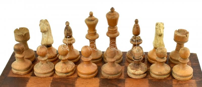 Sakktábla fa és gipsz figurákkal, 31x31cm