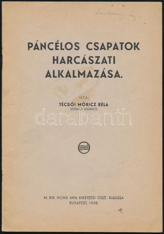 1938 Técsői Móricz Béla: Páncélos csapatok harcászati alkalmazása, sok... https://www.darabanth.com/hu/410-Gyorsarveres/410.0/Mutargy-papirregiseg-egyeb/Militaria~500029/1938-Tecsoi-Moricz-Bela-Pancelos-csapatok-harcaszati-alkalmazasa-sok-abraval-22p~II2551498