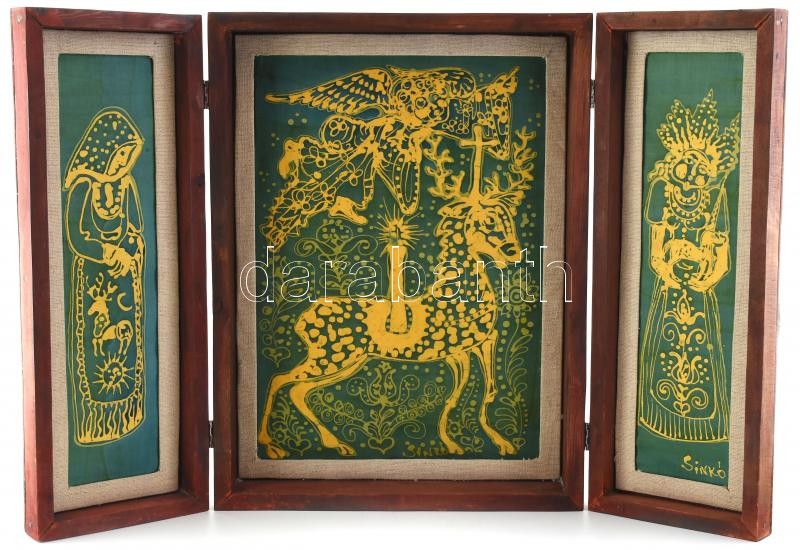 Sinkó Veronika (1945- ): Triptichon. Festett selyem, kinyitható dobozb... https://www.darabanth.com/hu/410-Gyorsarveres/410.0/Mutargy-papirregiseg-egyeb/Mutargyak-antikvitas~500008/Sinko-Veronika-1945-Triptichon-Festett-selyem-kinyithato-dobozban-53x80cm~II2549632