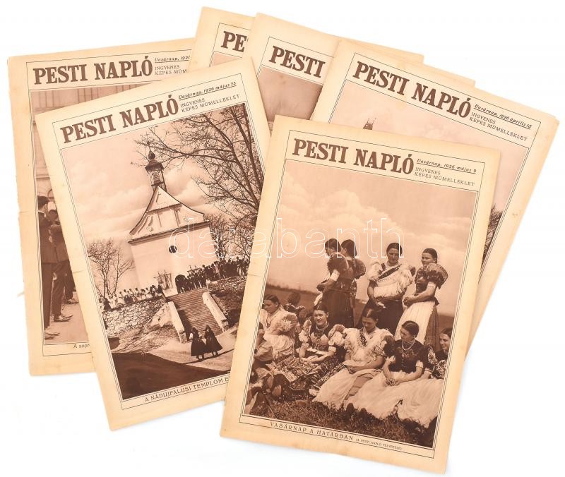1926 Pesti Napló Képes Műmelléklete, 6 db https://www.darabanth.com/hu/410-Gyorsarveres/410.0/Mutargy-papirregiseg-egyeb/Nyomtatvanyok~1000003/1926-Pesti-Naplo-Kepes-Mumelleklete-6-db~II2549122