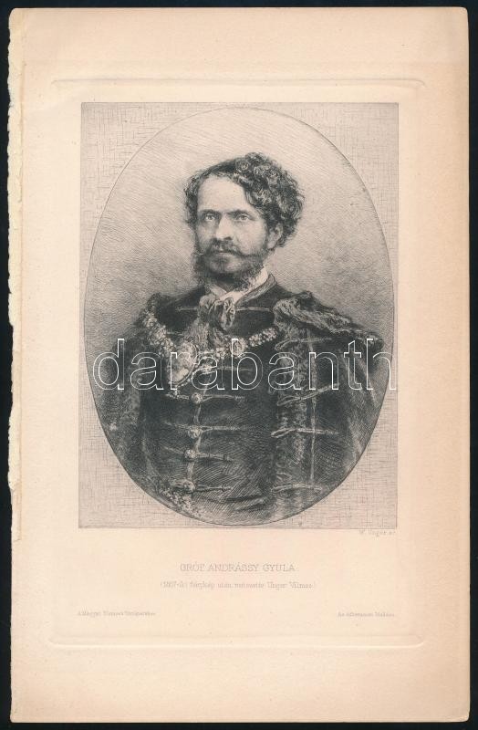 Leírás: Gróf Andrássy Gyula (1823-1890) miniszterelnök arcképe, heliogravűr, papír, 15x11 cm, papír: 25x16 cm