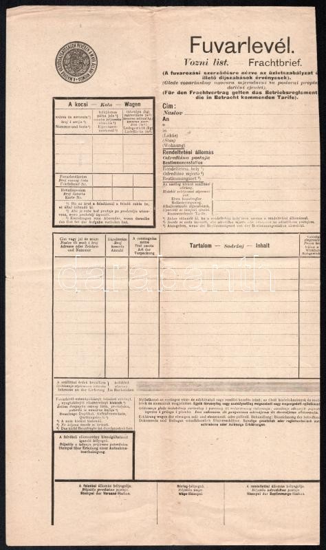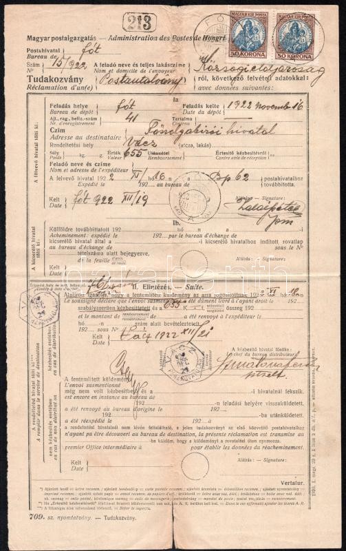 1922 2 db fuvarlevél, egyiken postabélyegekkel