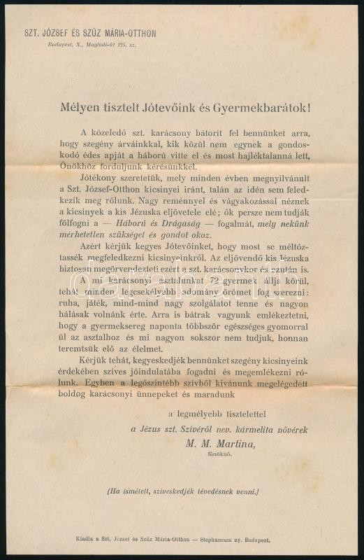 Leírás: Szent József és Szűz Mária otthon Kőbánya, ismertető, fénykép és csekkszelvény adományokhoz