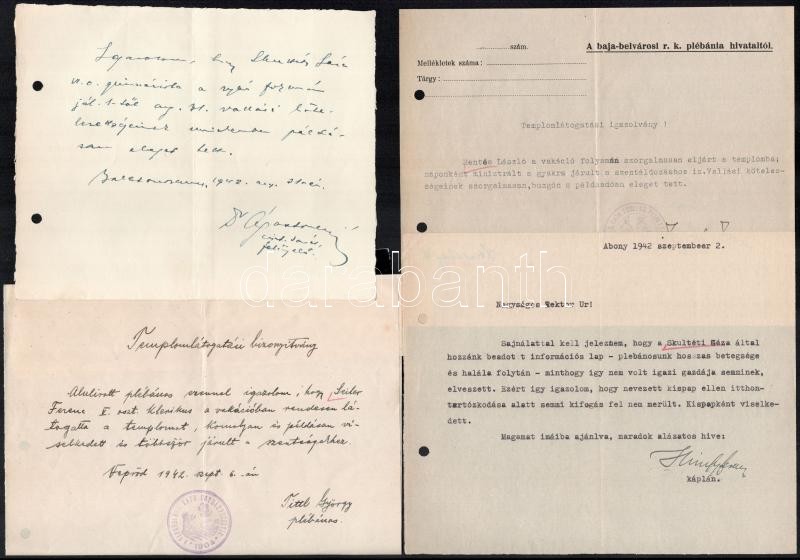 cca 1940-42 kb. 17 db templombajárási igazolás Kalocsai Papnevelő Inté... https://www.darabanth.com/hu/410-Gyorsarveres/410.0/Mutargy-papirregiseg-egyeb/Okmanyok~500019/cca-1940-42-kb-17-db-templombajarasi-igazolas-Kalocsai-Papnevelo-Intezet-kispapjairol-kulo~II2552020