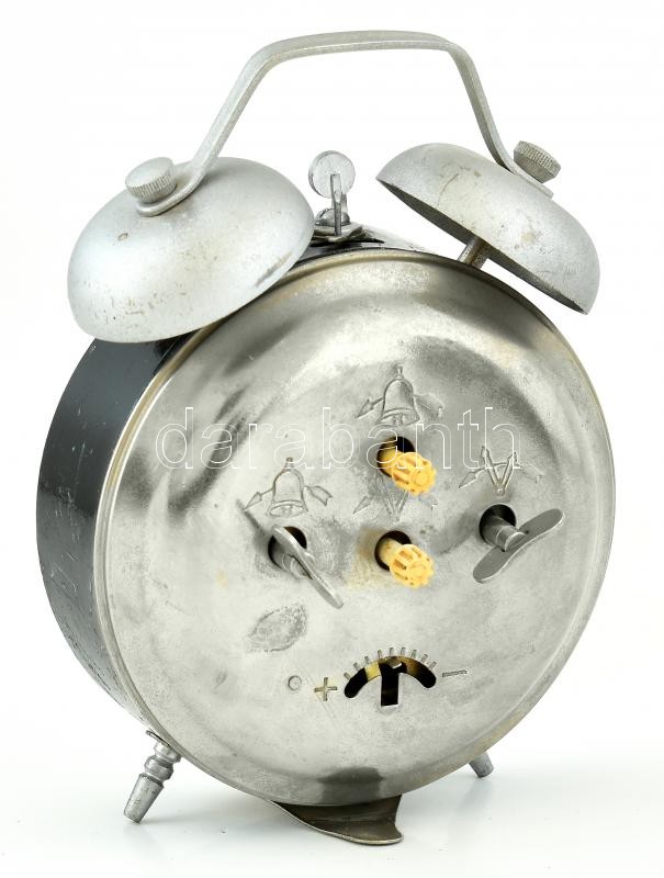 Leírás: Régi vekker, jelzés nélkül, működik, kopott, 16x11 cm