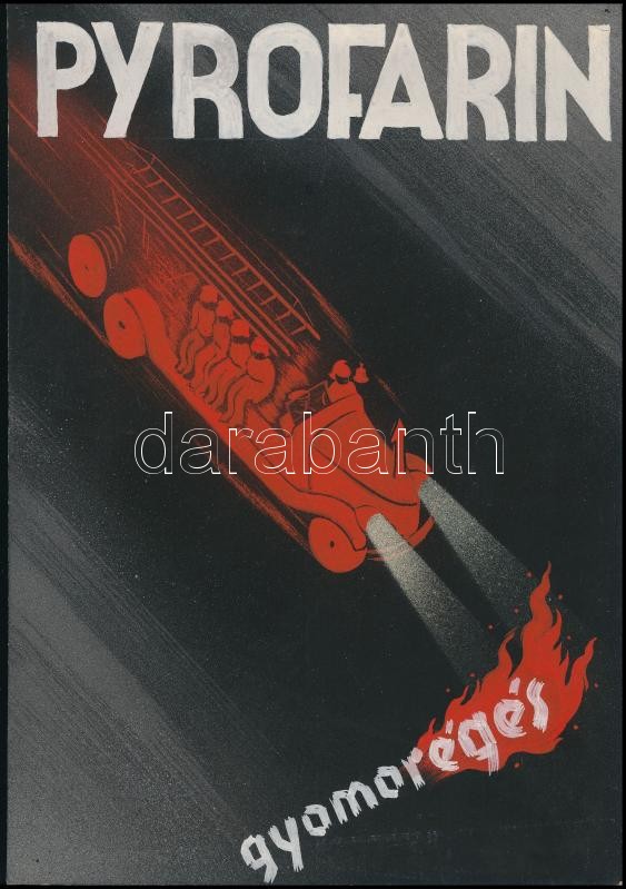 Pyrofarin, plakát- vagy reklámterv, 1935-40 körül. Tempera, papír. Jel... https://www.darabanth.com/hu/410-Gyorsarveres/410.0/Mutargy-papirregiseg-egyeb/Plakat~1000004/Pyrofarin-plakat-vagy-reklamterv-1935-40-korul-Tempera-papir-Jelzes-nelkul-felteheto~II2546156