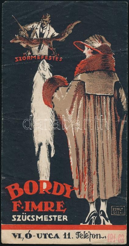 Bordy F. Imre szűcsmester számolócédula, hajtott