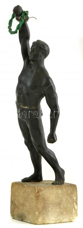 Leírás: Tornász figura, patinázott bronz, kopott, sérült. m: 22 cm