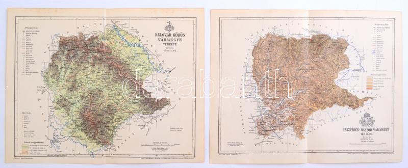 A Magyar Királyság és Horvátország vármegyei térképei, összesen 69 db térkép (Pozsony és Pozsega hiányzik), Posner Károly metszése és nyomása, magyar, horvát-szlavón, erdélyi-partiumi vármegyékkel, közte: Varasd, Verőce, Zágráb, Szerém, Modrus-Fiume, Máramaros, Csík, Háromszék, Liptó, Árva, Ung, Bereg, Sáros, Szepes, Nyitra... stb. 23,5x30,5 cm körüli méretekben Szép, gyűjtői állapotban