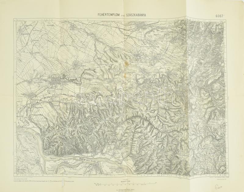 cca 1917 Fehértemplom és Szászkabánya térképe, 1:75:000, Bp., K. u. K. Militärgeographisches Institut, az alján a térképet nem érintő szakadással, hiánnyal, 38x54 cm